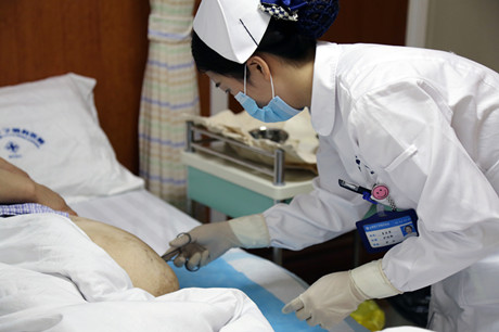 (2)了解患者每日大便情况,有便秘患者及时遵医嘱处理,鼓励患者多食粗纤维食物、蔬菜和水果,保持大便通畅,必要时遵医嘱给予服用缓泻药,小量灌肠或使用肛门栓剂,以促进排便。避免因大便干燥而用力排便而增加颅内压,导致脑血管畸形出血的发生。维持规律的排便时间也有利于康复的训练。