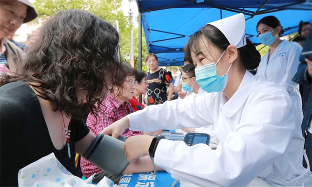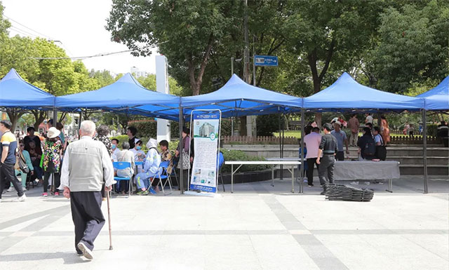 上海蓝十字脑科医院神经内科5B病区主任余志良、中医科李均平博士等组成的志愿医疗队早早来到活动现场,为居民提供健康问询、血压测量等专业而暖心的服务。