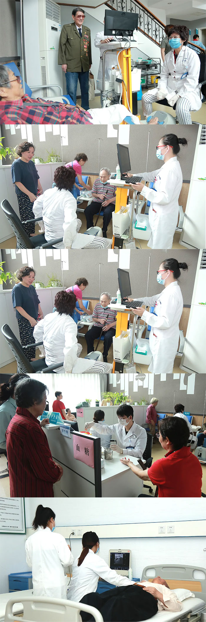 本着从老英雄及军属的实际需求出发原则,从报名的科室和医护志愿者中经过精心筛选,我院派出了由脑血管病科、神经内科、肿瘤科、疼痛科、中医科、康复科、超声科等科室组成的共计19人的医护服务队,为老英雄及军属提供医疗志愿服务。