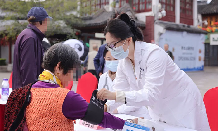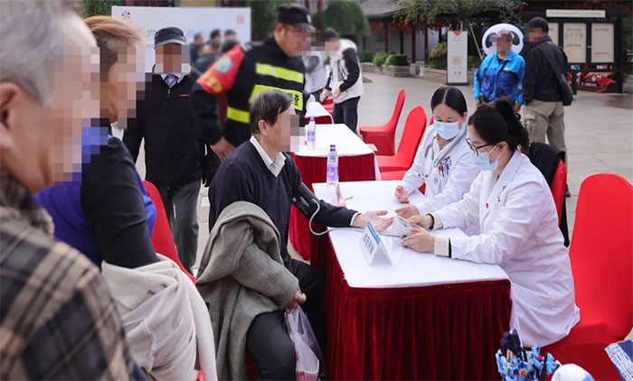 护理部宋凡可从活动开始便忙碌不止,为现场的群众和游客提供血压测量服务。她娴熟的操作和贴心的服务成为了现场又一道温暖而专业的风景线。