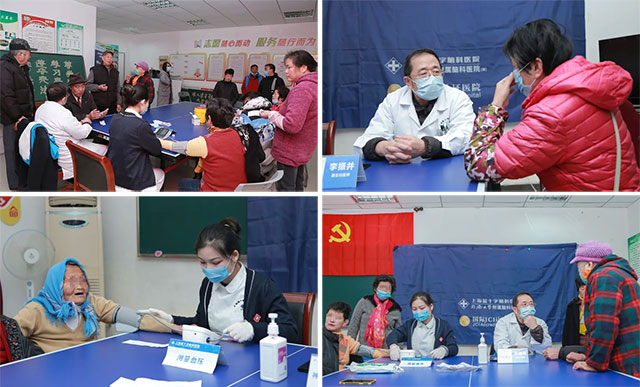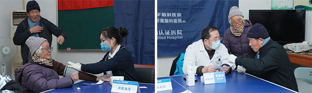 ▲ 蓝十字医疗志愿者,为社区居民健康把脉