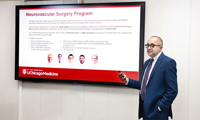 芝加哥大学医学中心神经科主任Shyam Prabhakaran博士则详细介绍了科室情况。他表示,芝加哥大学医学中心神经科实力雄厚,在《美国新闻和世界报道》评选的神经病学和神经外科项目中排名前50名。