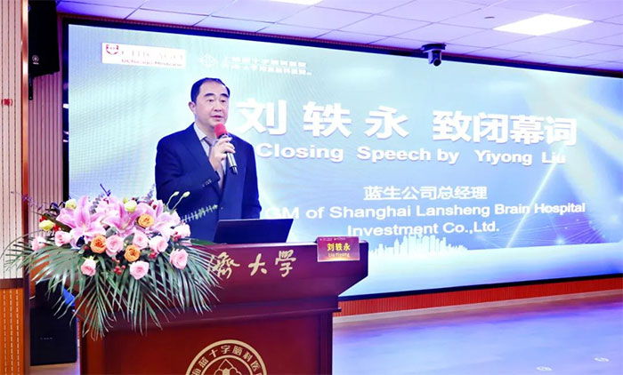 刘轶永总经理代表蓝生及卓立强董事长对论坛胜利闭幕及合作续签表示热烈祝贺,认为参访研讨,难能可贵;学术报告,精彩绝伦。刘轶永总经理称赞了UCM及在中国以裴钢院士为首的科学家为脑科学发展所作贡献及所获成绩,指出,蓝生公司也致力探索脑病最新的诊疗方法和治疗策略,过去五年与UCM合作交流卓有成效,今天再续签约合作,意义重大。他表示,希望通过国际交流和合作,汲取先进经验知识、医疗技术和服务理念,共建具有国际水平的专病中心,实现共同进步,携手推动最新研究成果转化及脑病领域科学进步。