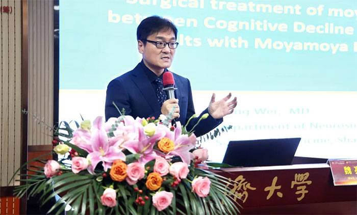 东方医院魏亮教授分享了《成人烟雾病手术治疗方法及术后认知功能减退的脑血流动力学研究》。他从前期的手术到后期的术后评估,分析了患者术后认知功能减退的可能原因和机制,分享了对脑血流动力学改变的研究。