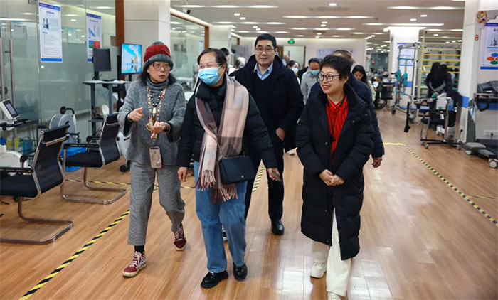 沈玉芹教授在王小红总监、潘耀良副院长和张敏主任等人的陪同下,实地参观了蓝十字医院康复大厅,了解医院康复医学科营运状况及场地设备设施,对医院心脏康复中心建设前期情况有了一定了解。