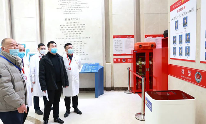 黄陶承书记随后又先后前往微型消防站、安保消防控制室、高压氧科、库房等重点区域,针对医院消防安全制度、值班记录等是否完整详实,消防设施运行情况,微站消防安全员应急响应能力等进行了深入细致的检查。