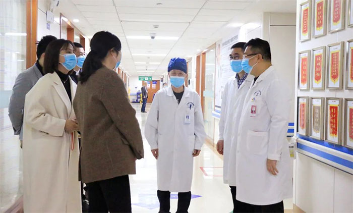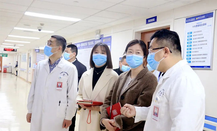 李蓉一行先后来到医院手术室、9楼神经外科重症监护病房、8A神经内科重症监护病房、6楼神经外科病区、康复科、高压氧科、影像科等科室,详细了解整体布局、诊疗环境、各科室技术特色等。