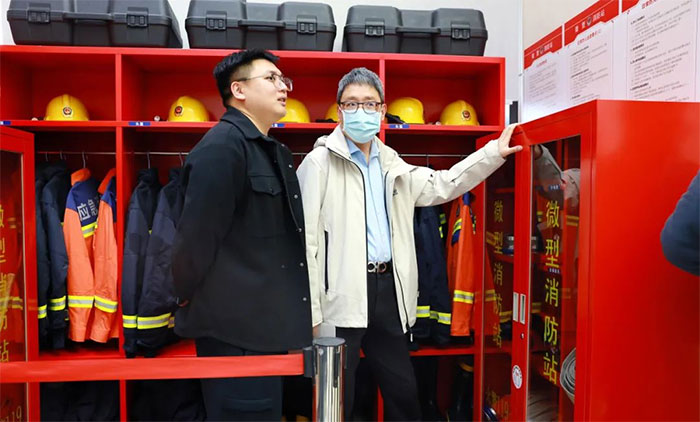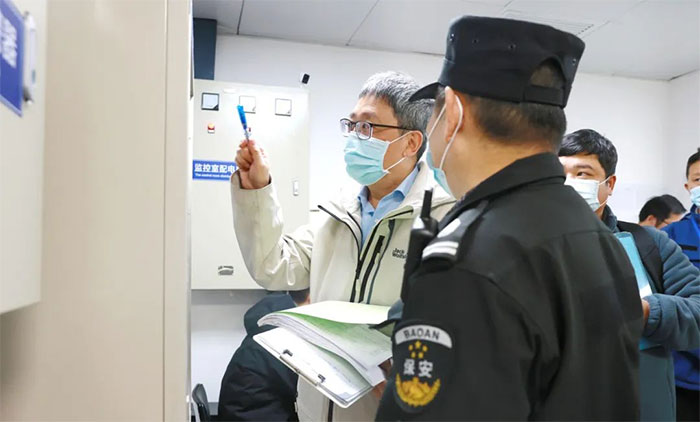 专家组一行先后深入消控室、消防水泵房、消防强排室、高压配电间、液氧站、电梯机房、信息机房等重点区域,仔细检查消防主机、自动报警系统、室内外消火栓等消防设施设备的配置和维保记录是否规范。