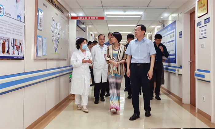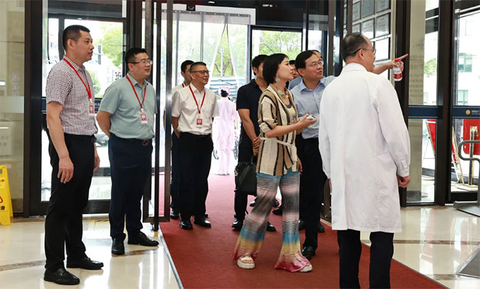 刘畅董事长一行抵达医院,先后参观了门诊大厅、手术室、9F重症医学科、8A神经内六科、7A神经内三科、7B神经内五科、康复医学科、高压氧科、影像科、(MDT)多学科专家联合会诊室、放疗科、消控室等。每到一处,刘畅董事长仔细聆听相关介绍,就医院管理、诊疗特色、技术创新、服务内涵等方面内容,与陪同领导及科室医务人员探讨交流,并不时拍照、记录。