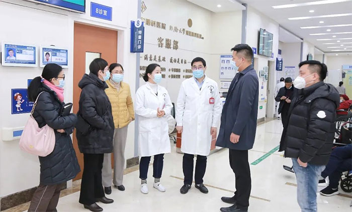 ▲ 院领导陪同来访学院领导深入医院实地考察