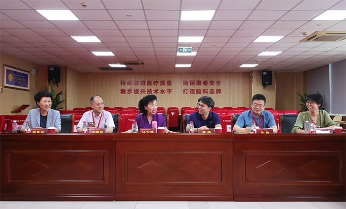 座谈会上,潘耀良副院长首先介绍了医院概况。他详细阐述了医院的学科人才建设、党建文化、设施设备以及发展规划。潘副院长介绍,上海蓝十字脑科医院是一家具有发展潜力的特色脑专科医院,不仅是美国芝加哥大学医学中心国际合作医院,还是华东理工大学脑机接口技术临床应用基地。医院始终秉持“德信为本、精医于民、责任担当、追求卓越”的理念,围绕“323学科建设计划”方向,聚焦学科技术特色与医教研全面发展,强化人才队伍建设,提升优质服务能力,致力于打造一所现代化、国际化、专业化的脑科医院。