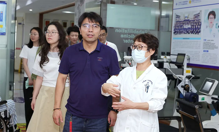 为深化院校合作,共育医学人才,推动产学研深度融合,6月20日下午,上海杉达学院国际医学技术学院产教融合办公室主任瞿强率队莅临上海蓝十字脑科医院进行专题调研。上海蓝生脑科医院投资股份有限公司副总裁叶文琴教授、医疗管理部护理培训主任唐秀花,以及医院总经理兼书记朱敏、院长项耀钧、副院长潘耀良、周克祥等热情接待并陪同。