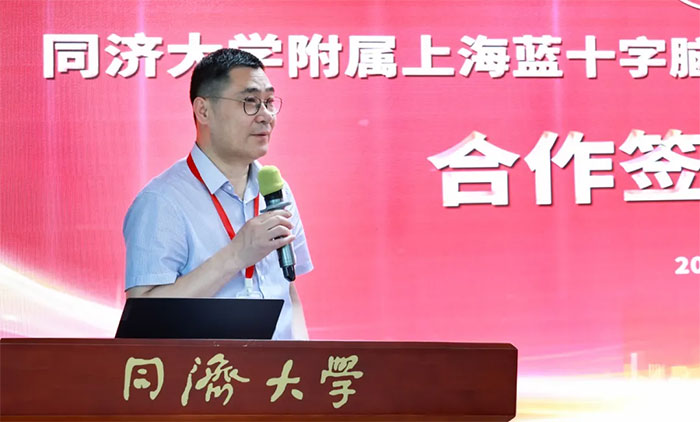 仪式上, 项耀钧院长从医院概况、学科人才、党建文化、设施设备、发展规划等方面向与会人员介绍了医院的基本情况。项院长表示,医院以“323学科建设计划”为发展方向,依托同济大学及芝加哥大学医学中心等平台的资源优势,以学科技术特色和优质服务能力建设为主线,以打造过硬人才队伍为支撑,致力创建一所现代化、国际化、专业化的脑科医院。