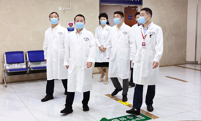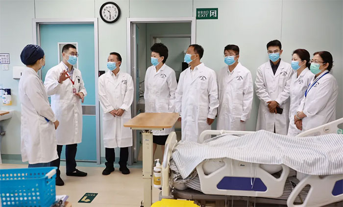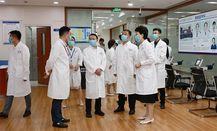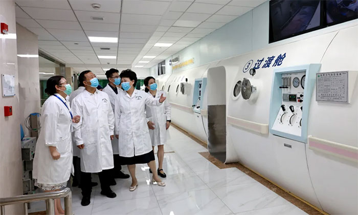 合作签约揭牌仪式后,高鹏处长等一行在潘耀良副院长陪同下,到医院手术室、重症医学科、神经内科病区、康复医学科、高压氧科、影像科等特色科室实地参观,与临床医护人员深入交流。医院规范的管理、先进的医疗设备、干净整洁的就诊环境、特色鲜明的专科特色给嘉宾留下了深刻的印象。