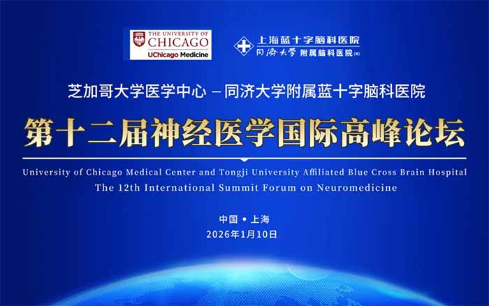 神经医学的每一次突破,都在为人类健康拓展新的边界。2026年1月10日(周六),第十二届芝加哥大学医学中心—同济大学附属蓝十字脑科医院神经医学国际高峰论坛将在上海蓝十字脑科医院【同济大学附属脑科医院(筹)】举办, “线下主会场+线上云直播”的模式同步进行,诚邀广大同仁云端相聚,共同探讨神经医学的最新进展与未来方向!