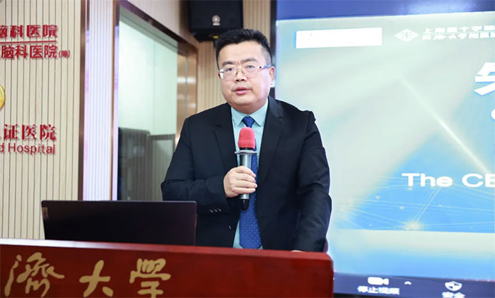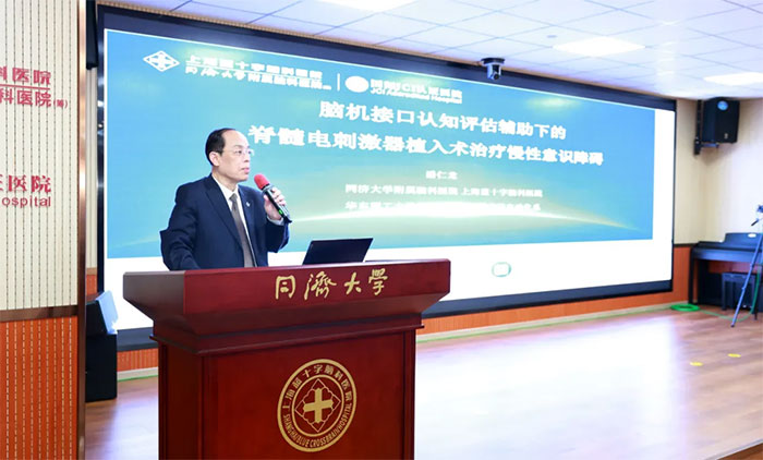 蓝十字潘仁龙主任率先分享了《脑机接口认知评估辅助下的脊髓电刺激器植入术治疗慢性意识障碍》主题报告,以蓝十字作为国家重点实验室华东理工大学脑机接口技术临床应用基地、建立脑复苏中心为例,展示了创新技术与临床诊疗相结合的方法和应用成果,强调脑机接口认知评估辅助下的脊髓电刺激器植入术应用前景广阔,为慢性意识障碍患者带来了新的突破和希望。