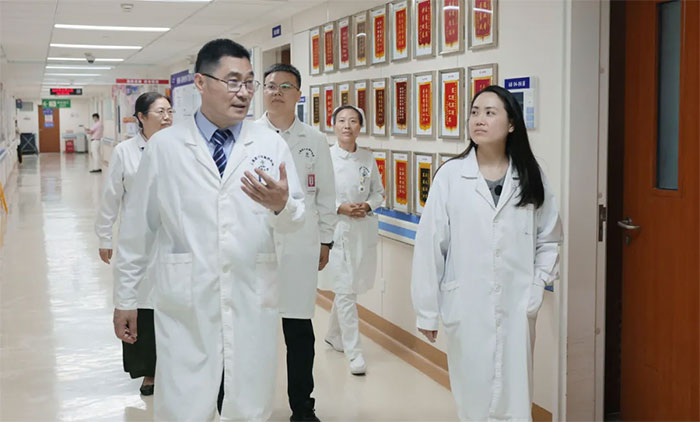 参观过程中,Sophie Su博士就特色学科发展、医疗科研创新、人才队伍建设等情况与科室负责人及陪同人员展开交流。