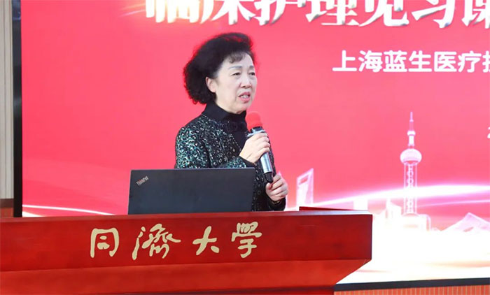 蓝生脑科叶文琴副总裁为本次比赛致辞。她表示,临床见习课是加强理论知识学习吸收的重要环节,也是打造高品质教学医院的重要模式。近年来,脑科和天佑两家医院有幸得到了诸多高等院校的厚爱,得到了同济和六院两所大型教学医院的帮扶,建立了较为标准规范的课程体系、完整的护理教学管理体系及具有一定素质、一定基础、一定能力的师资队伍,我们珍而重之。同时,她指出,当前,临床教学工作虽取得一些成绩,但仍存在不足,希望本次比赛能以点带面树标杆,通过以赛促教的形式切实提升教学质量内涵和师资队伍实力水平,为扎实推进同济大学附属医院脱筹奠定基础。叶文琴副总裁对与会评委、嘉宾给予蓝生脑科真诚帮扶表示诚挚感谢,并预祝选手们取得佳绩、赛出风采。