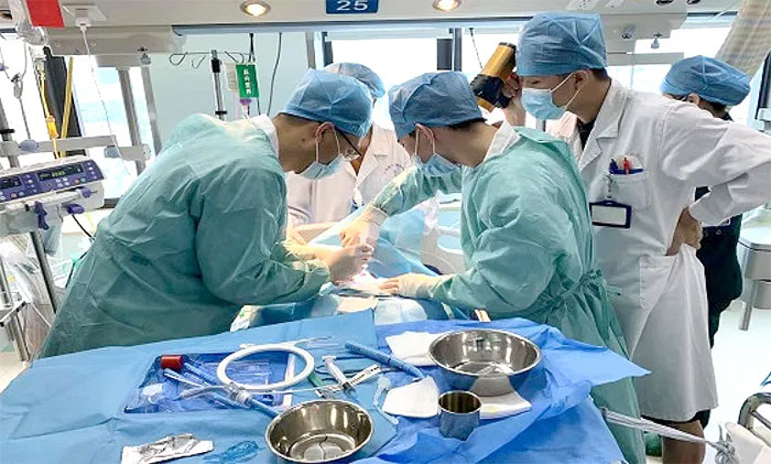 梁先生虽然暂时已“转危为安”, 但是病情随时可能急转直下。2021年12月7日傍晚5时许,梁先生的心电监护仪再次发出警报。在刘纪强主任的带领下,神经外科重症监护病房第一时间启动应急预案,对梁先生进行抢救。