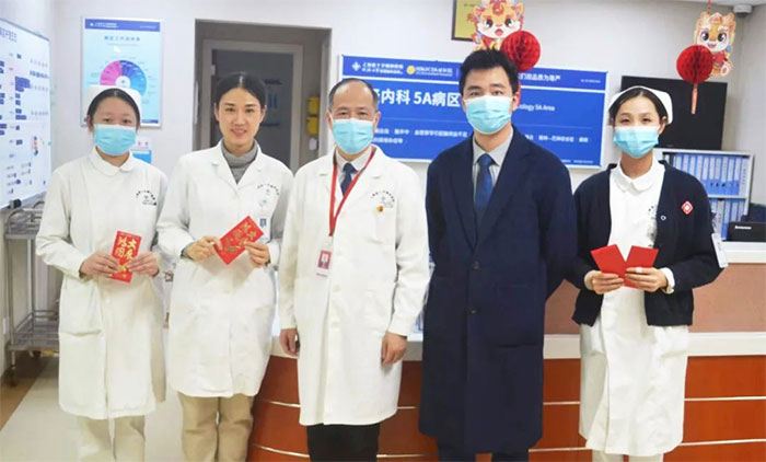 院领导的真情慰问和关爱既增添了温馨和暖意,也给在岗人员带去了坚守奋斗的力量。大家感动不已,纷纷表示,“多年来,领导们都一直坚持除夕慰问,温情和年味从未缺席,我们一定会牢记使命、坚守岗位,不负医院和患者的重托。”