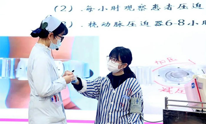 2月24日,“2021届护理实习生非脑科护理标准化操作表演赛”如期举行,由医院护理部教学干事、带教科室护士长、带教老师、实习生组成的13支参赛小组,进行了“急性肺水肿的应急处理、人工呼吸器的应用与护理、休克病人的抢救配合、支气管镜的应用与处理”等一系列技能大比拼,既展示了护理实习生的良好精神风貌,也是一场实习成果的盛大汇演。