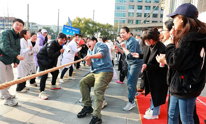 本次拔河比赛,既让全院女同胞度过了一个快乐而充实的节日,展现了职工团结、奋进、健康的精神风貌,也增进了职工的凝聚力、向心力和感召力,丰富了医院积极倡导职工“快乐生活、快乐工作”的精神文化内核。新时代,新梦想,新征程,新号角,每个蓝十字人将勇于秉持、恒于发扬拔河精神,以更加崭新的奋斗姿态和更加昂扬的精神面貌投入到今后的工作和生活中,为谱写医院高质量发展新篇章、打造健康中国新愿景贡献力量。