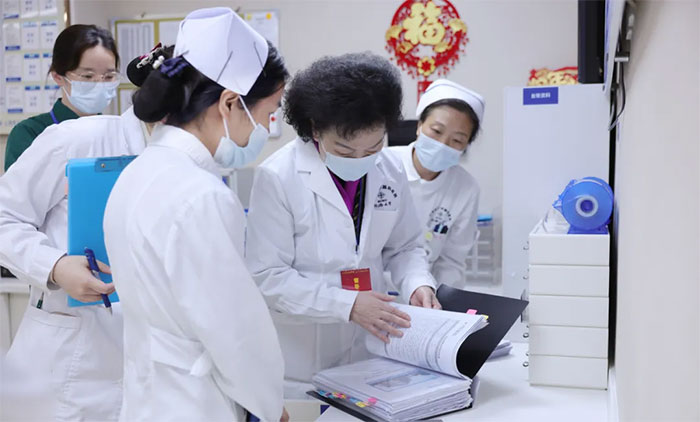 周咏梅总监率领病区管理组深入普通住院病区和重症监护病房,重点检查护理常规及技术规范、护理不良事件上报、药品管理、危急值报告、服务流程、应急预案、护士在职培训等方面内容,根据病区患者特点,对当值护士开展抽查考核。