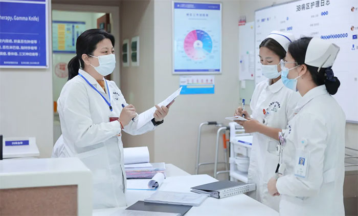 督查开始前,项耀钧院长对督查组一行表示热烈欢迎。他表示,在蓝生脑科公司的关心支持下,近年来医院打造出了一支凝聚力强、执行力强、战斗力强的护理团队,护理服务质量水平持续提升,优质服务工作得到了患者和家属的认可。同时,医院致力于高质量发展的愿景目标,对护理团队也提出了更高的要求。此次护理质量督查是一次宝贵的学习和检验机会,将进一步提升护理安全质量管理,促进医院护理服务高质量发展迈向新阶段。