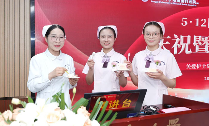 表彰大会尾声,象征着甜蜜与祝福的节日蛋糕被缓缓推入会场。院领导再次为大家送上暖心祝福:“祝大家护士节快乐,工作顺利,阖家欢乐。”在一片欢声笑语中,与会人员共同切开蛋糕,共享甜蜜,互道祝福。