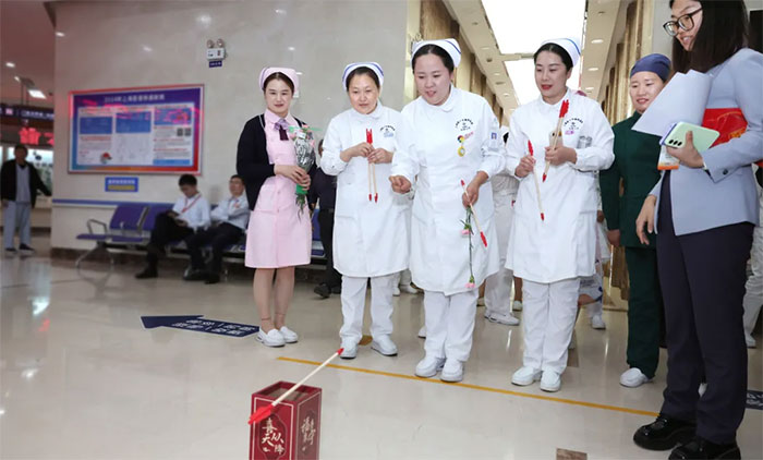 展望未来,他提出四点期望:一是坚守初心,深化服务内涵。二是强化科研,提升学科竞争力。三是人才筑基,完善梯队建设。四是筑牢安全,践行品质承诺。他表示,医院将持续推进“员工满意工程”,优化职业发展通道,让每一位护理人进一步感受到尊重与归属。希望大家永葆对护理事业的热爱,以南丁格尔之灯照亮前行之路,为医院高质量发展、为健康中国建设贡献更大力量!