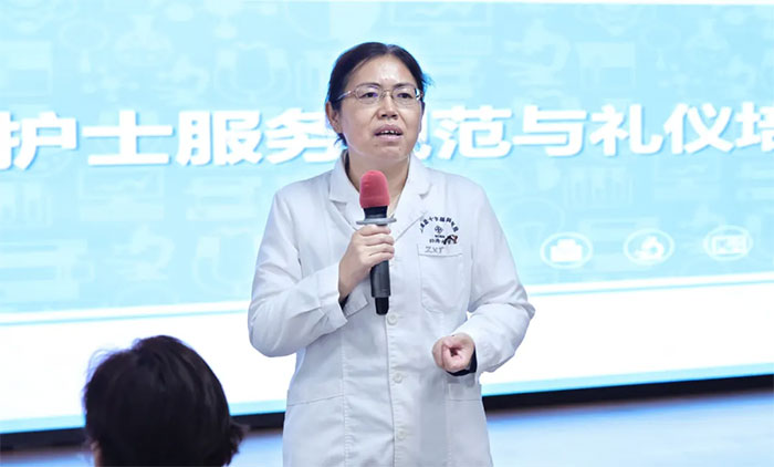 “护理是科学、艺术、爱心的结合体”,张秀娟主任表示,护理工作是医疗服务的“第一窗口”,护士的一言一行、一举一动,直接关系患者就医体验,更承载着医院的温度与形象。护士礼仪不仅是外在的规范,更是内心的修养;不仅是服务的标准,更是人文的彰显。她希望大家都能学以致用,把培训所学运用到实际工作中,将人文关怀融入对患者的服务之中,用真诚服务赢得患者信赖,推动优质护理服务纵深发展。
