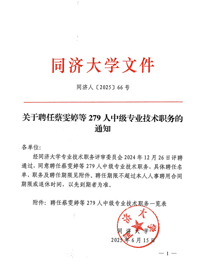 同济大学是教育部直属的全国重点大学,中央直管高校,是双一流A类、985工程、211工程建设高校,在医学领域拥有深厚的学术积淀与顶尖的科研平台。此次卢云鹤博士获聘同济大学讲师,是对其学术水平、教学能力及行业影响力的综合肯定。