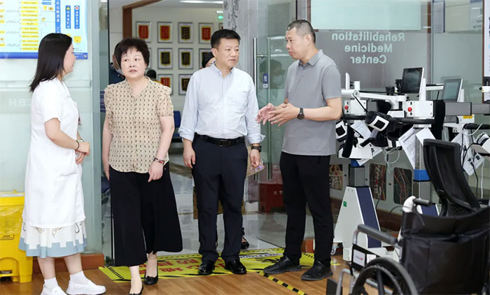 随后,在吴春芳的陪同下,张浩一行实地参观了医院高压氧科、放疗科、9F重症医学科、手术室、7A神经内三科、2楼神经康复医学科等特色科室。医院规范化的管理模式、先进的诊疗设备、整洁有序的就医环境以及鲜明的脑科专科特色,给领导们留下了深刻印象。