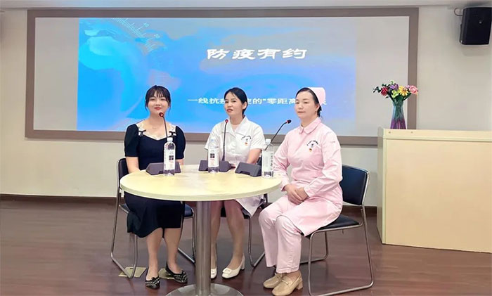 比赛中,张思嘉扮演主持人,张珍珍和杨娇则扮演接受访问的“疫”线天使。在她们一问一答的互动中,将疫情防控的亲身经历和院感防控的深刻感悟融汇一炉,别有见地。