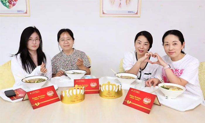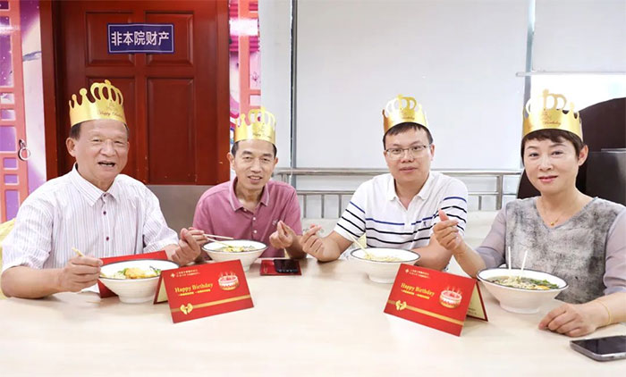生日会上,院领导给大家送去精美的生日礼物和生日贺卡,大家吃着“长寿面”,分享着生日蛋糕,互致问候,许下美好心愿,让生日会现场洋溢着欢乐的氛围。
