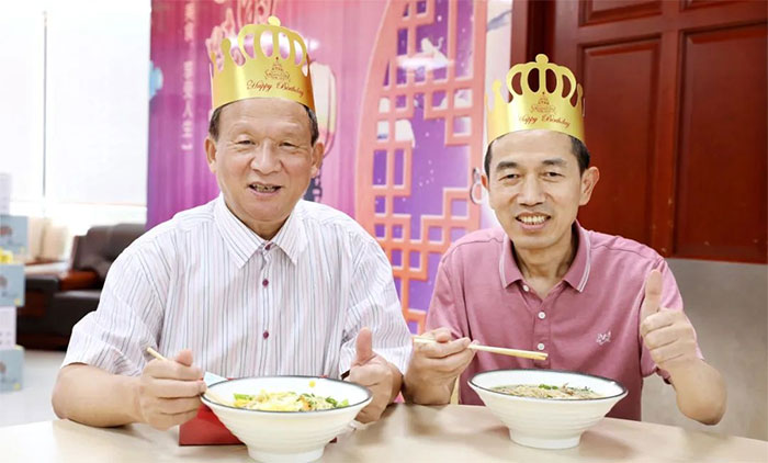 肿瘤科3B病区胡玉堂主任是本次生日会中最年长的员工,生日会开场前胡主任早早的来到了现场,他高兴的吃着长寿面,和同事们互相拍照分享着喜悦。胡主任表示自己今年72岁了,感到今天是自己过的最有意义的生日,真切感受到我们蓝十字脑科医院对医院文化的重视,对员工设心处地的关心、关怀和关爱,相信在这种充满爱的文化的激励和鼓舞下,医院会发展的越来越好!