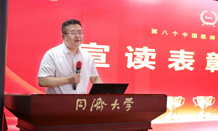 项耀钧院长高度肯定了全体医师在推动医院高质量发展中的突出贡献。他指出,医师是医院发展的核心力量,也是守护人民健康的主力军。他勉励大家以“德馨于行,技精于勤”为准则,执着追求、勤学不辍,不断提升医疗服务质量与专业技术水平,始终将患者放在首位,做可信赖、有温度的“健康守门人”。他号召全体医师将个人成长融入医院发展大局,发扬团队协作精神,携手共进,为守护人民群众生命健康福祉而不懈奋斗。