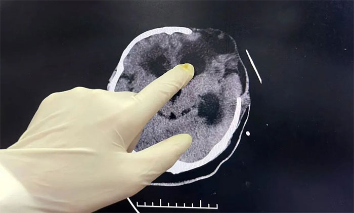 到了2022年12月,患者的身体状况和主要生理指标都控制较好,但意识状态并未如预期出现明显好转,临床经验十分丰富的张静波主任立即警觉起来,在排除其他疾病可能,开展有针对性检查后发现,其双侧脑室出现了不同程度的脑积水。