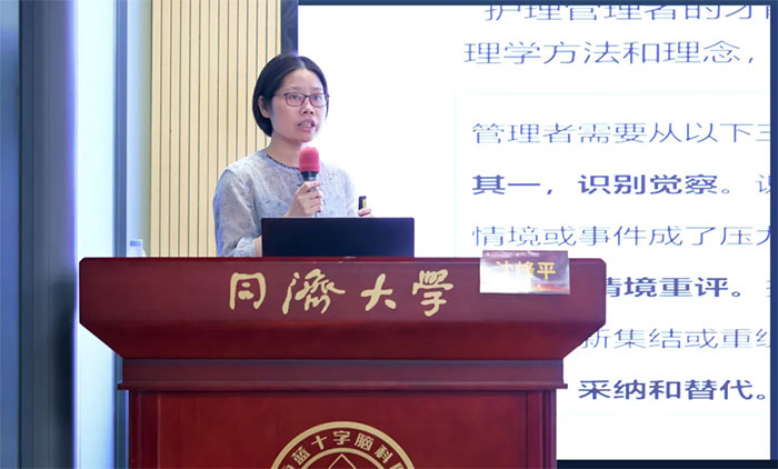 上海市护理学会监事长蒋红结合案例分享了系统思维、评判性思维在护理决策、团队协作及问题解决中的创新性应用,助力提升护理综合管理能力。
