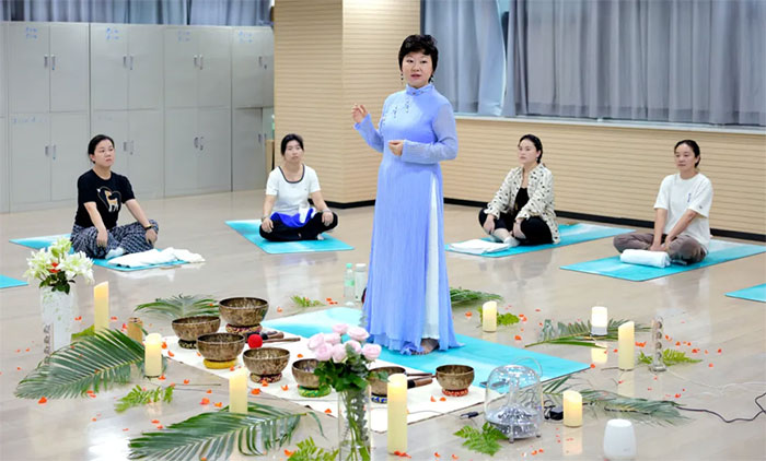 本次活动,由7年印度古典瑜伽、冥想导师,颂钵疗愈师,芳香疗愈师刘滨皞担任治疗师,她结合古典瑜伽、自然芳香、印度脉轮颂钵疗愈、《皇帝内经》五音疗疾理念,带给大家独特的疗愈体验。