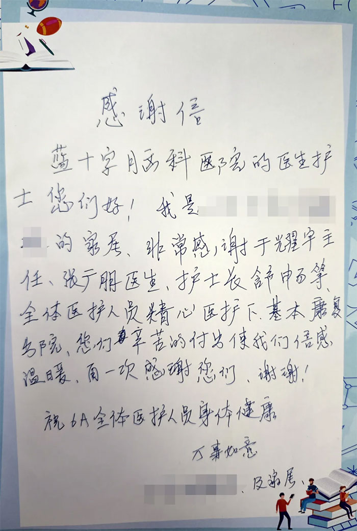 这些感谢信及婉拒的红包、购物卡等,不仅是对蓝十字医护医疗技术及优质服务的肯定,更是对医护人员敬业奉献的赞美,它们见证了一个个生命在困境中重获新生的喜悦,也鞭策着更多蓝十字人在今后的工作中不忘初心、砥砺前行,书写更多“满意是基础,感动是目标”的医患故事。
