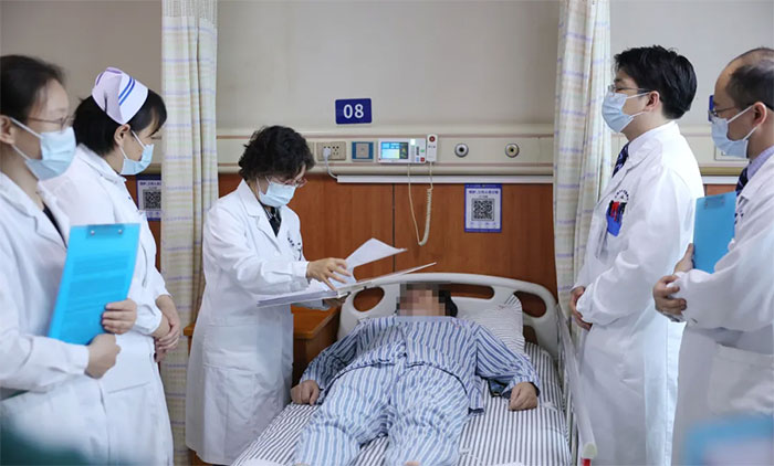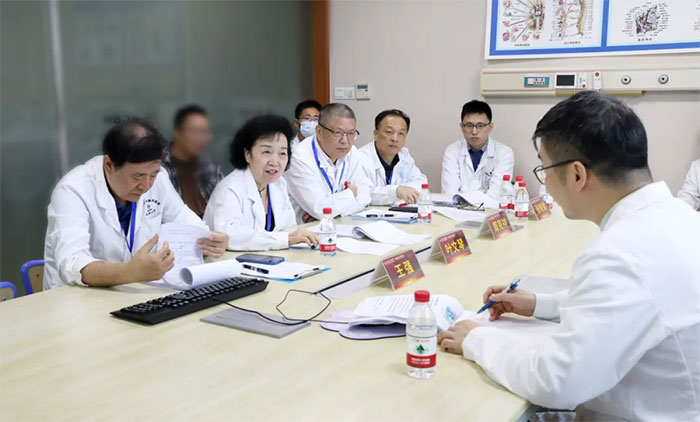 随后,围绕病情监测、症状管理、用药指导、并发症预防及心理支持等,卢云鹤博士带领团队,并邀请影像科、麻醉科等兄弟科室成员,开展了多学科范畴的深入分析讨论,重点在于肿瘤与血管关系的评估、内分泌功能监测、神经功能评估、治疗方案及备选治疗。当主任医师躬身聆听患者心声,当中青年骨干在思辨中碰撞火花,当规范严谨的诊疗流程成为自觉行动,生命的希望便在每一次查房的脚步声中愈发清晰有力。“请管床医生将今日查房内容,如实记录于查房记录中!”卢云鹤博士在查房结束时这样要求道。