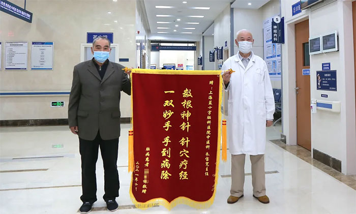 “现在我这么好,全靠朱医生的治疗。”老沈感激地说,没有朱医生的精心治疗,我的起居和日常生活就没这么方便了,今天来送一面锦旗,以表谢意。