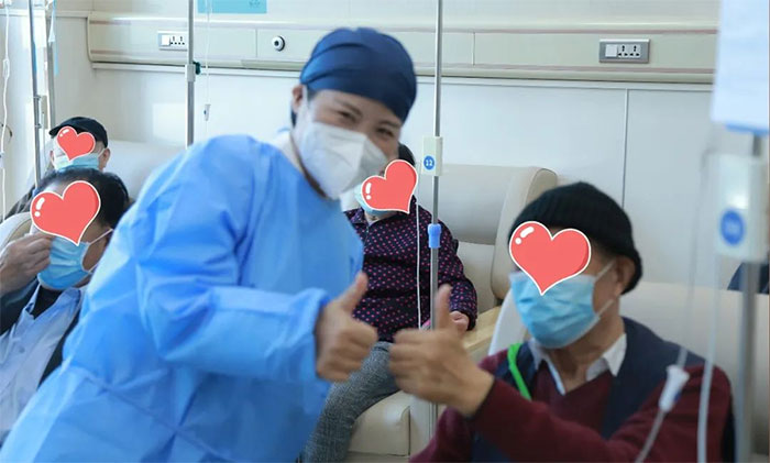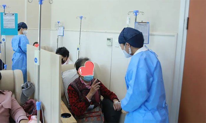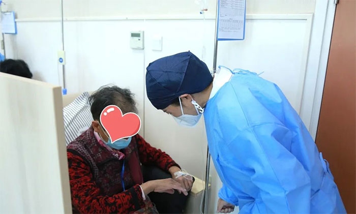 不到一个月的时间,张福英和刘非凡就和这些患者打成了一片。每次都会主动关心、询问他们的身体恢复情况,闲时还会为他们科普输液常识。巡视的时候,遇到需要帮助的患者,更是不遗余力地及时为他们排忧解难。