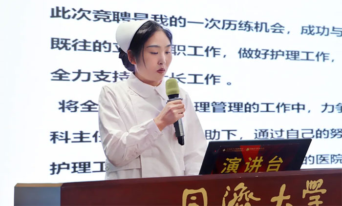 现场述职环节,竞聘者们从个人基本情况、工作经历、竞争优势、岗位认知、工作思路及规划等方面,进行了精彩阐述。演讲台上,竞聘者个个精神抖擞、英姿飒爽,展示了医院护理队伍优良的综合素质和职业风采。