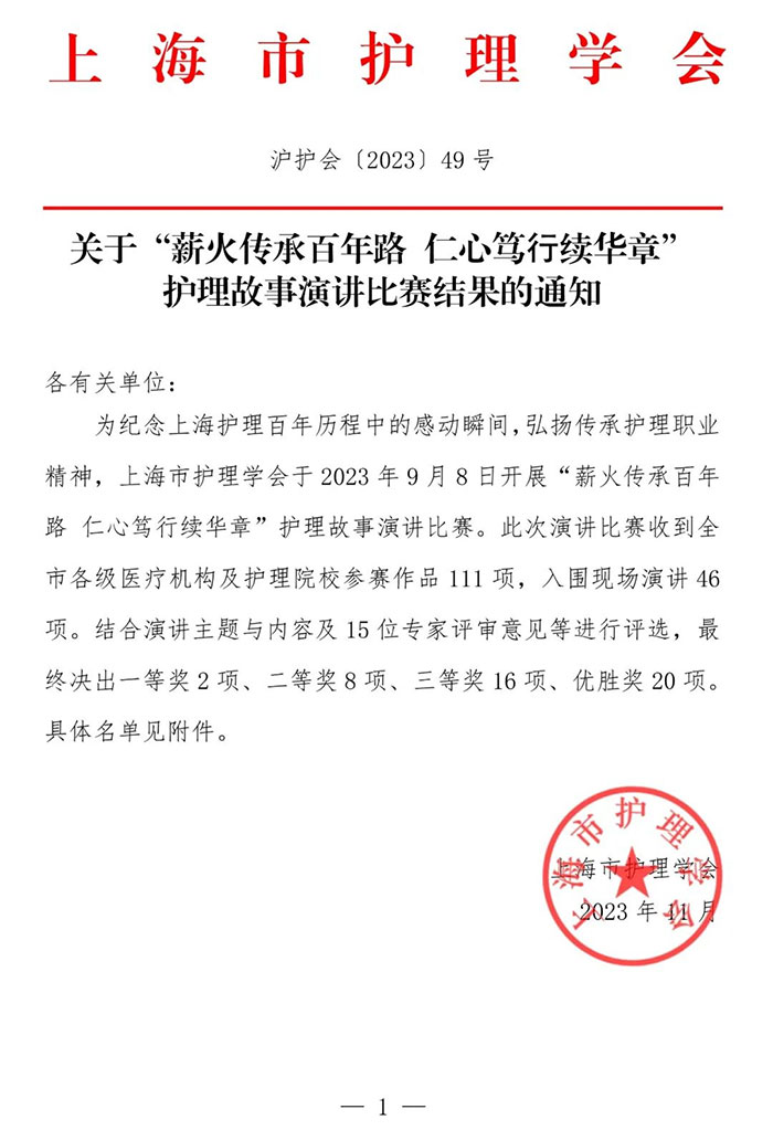 ▲ 上海市护理学会红头文件