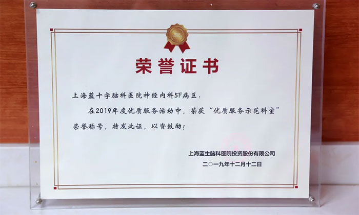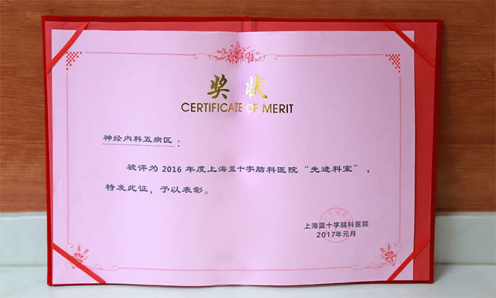 在李振并主任的引领下,神经内科5A病区先后获得上海蓝十字脑科医院2016年度“先进科室”、蓝生脑科2019年度“优质服务示范科室”等集体荣誉称号。