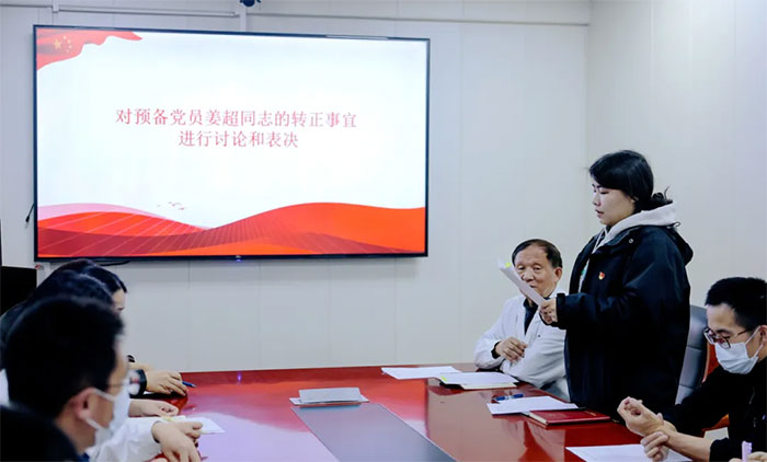 首先,姜超同志宣读转正申请,总结汇报了预备期内在政治思想、工作生活等方面的情况。