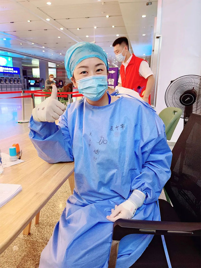 当从群里得知上海因疫情防控需求,急召医务志愿者往各个高速路口进行核酸采样、登记工作时,她毅然决然地第一时间私信护理分管副院长要求报名参与,完全不考虑还处于哺乳期的身体状况。所幸在院领导的劝说和卫健委的实际统筹下未能成行,但却依然无法扑灭她内心那一团炽烈的火焰。