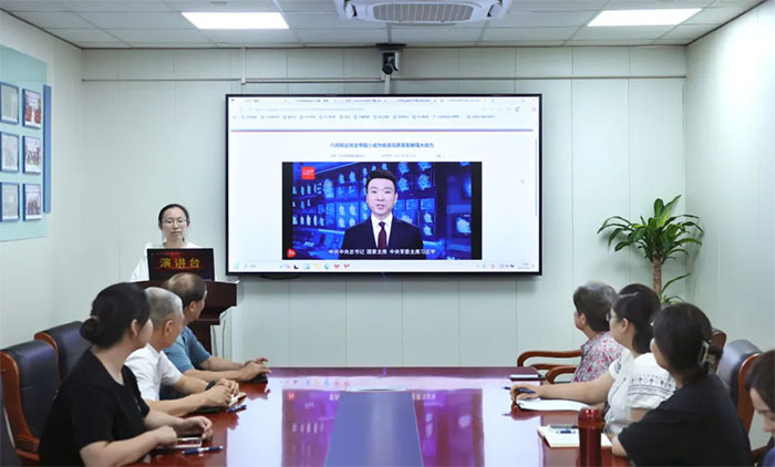 在交流研讨环节,党员同志们结合自身岗位实际,畅谈学习体会,气氛热烈。